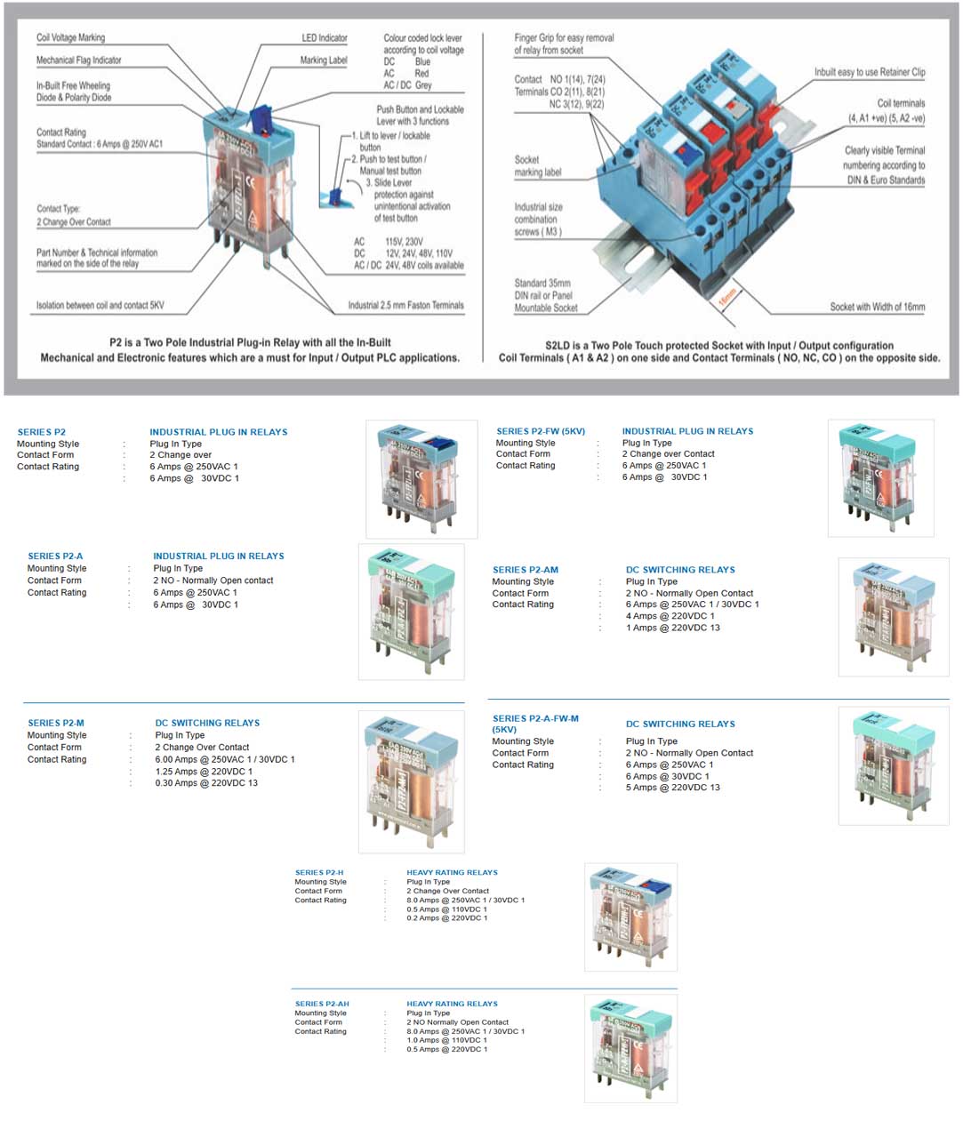 Contact us at +91-9343125235 / +91-9845808899 or email sales@vasielecware.com to buy Plugin Relays (P2 2CO).